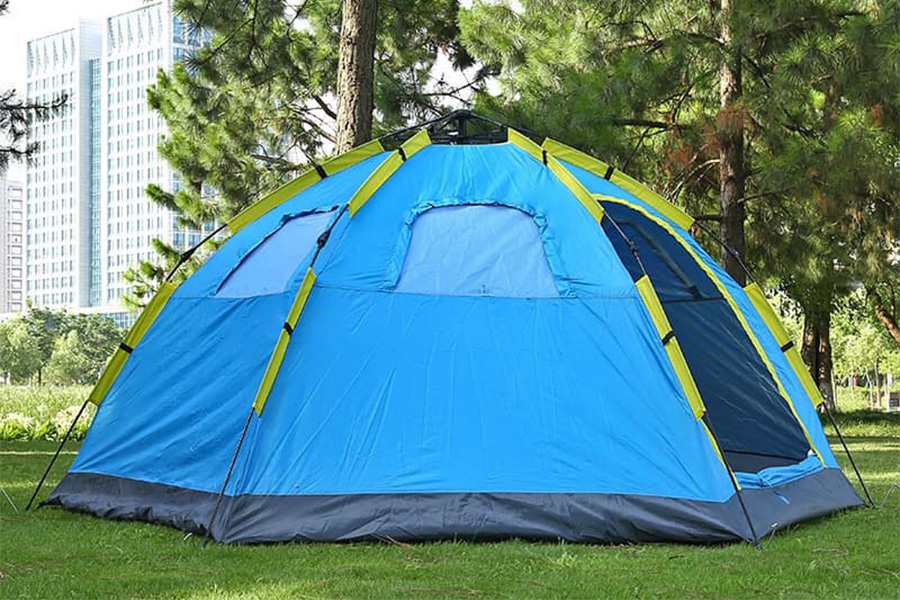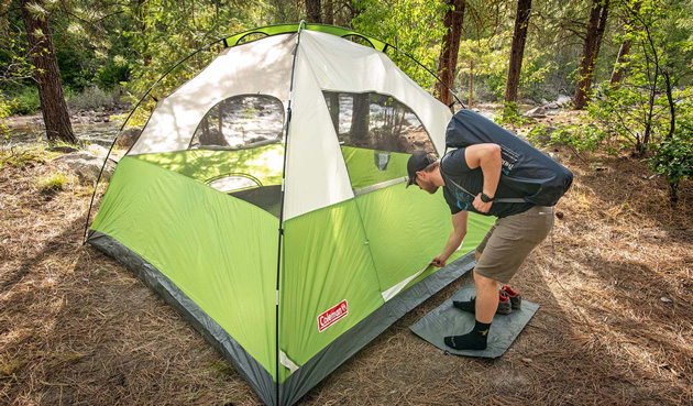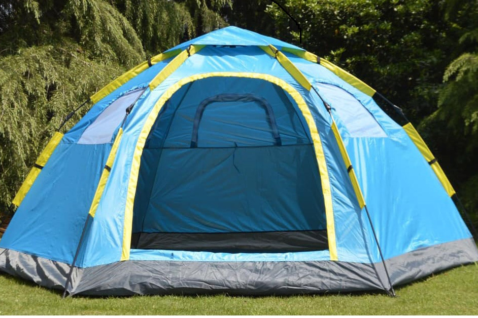 - Heavy-duty welcome mat, privacy windows, pole sleeves, pin and ring, and insta-clip hooks